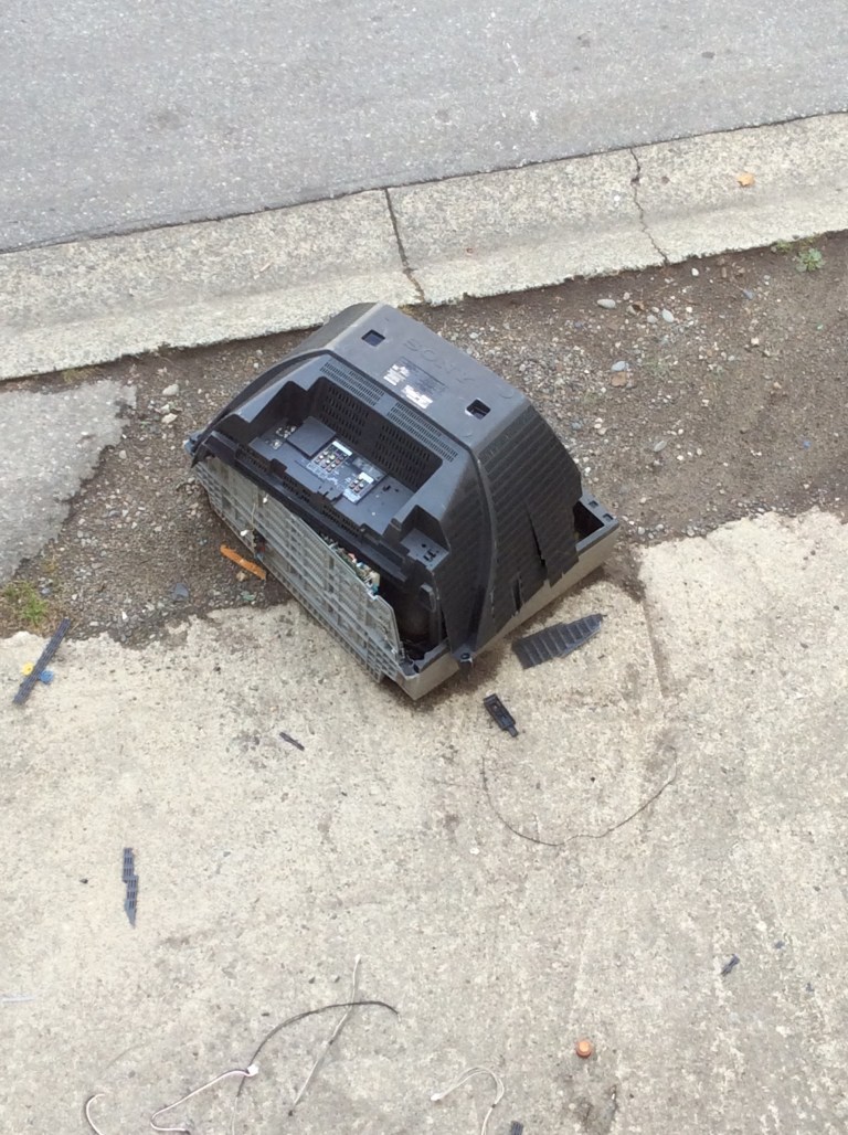 Later during the day, I was at my apartment and I heard some bangs outside. A homeless guy was trying to open the TV (probably there was something valuable to sell inside the TV ). The guy did his job and of course left the TV there in multiple pieces. After the “service” it was clear that the TV would go to a common garbage landfill. It is not the correct option because those TVs have poisonous metals and frequently those metals will contaminate aquifers.